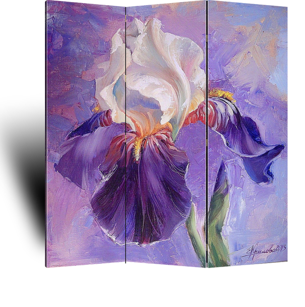 Описание ширмы Еще одно крупное изображение бутона, писала как этюд - с натуры, так как ирисы очень близки мне своим невероятным сочетанием цветов и необычной формой.