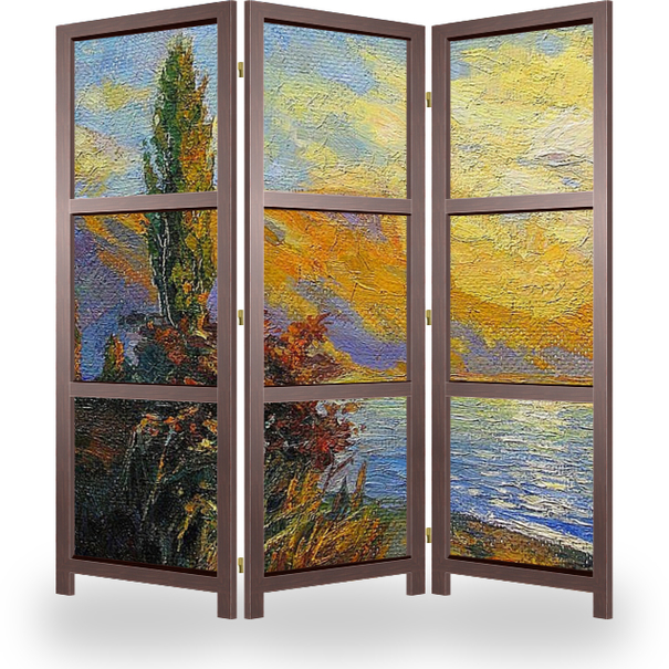 Описание ширмы акат, скоро солнце зайдет за гору и Крымское побережье погрузиться в нежный сумрак. Море покачивается от легкого ветра, тревожа солнечную дорожку. Ты смотришь на нее и кажется, что можно пройти по ней до гор, до самого солнца. Ты вдыхаешь солоноватый