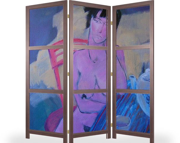 Описание ширмы обнажённая натура, работа выполнена в стиле модерн, навеенная работами французских мастеров модернистов начала прошлого века, отражающая настроение и переживание персонажа.