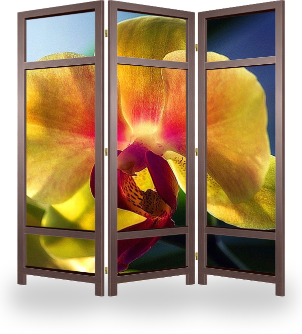 Ширма эконом отлично подойдет для временного размещения, рекламы, для отгораживания объектов интерьера и его дополнения. Лицевая сторона с изображением, обратная сторона открытый каркас
