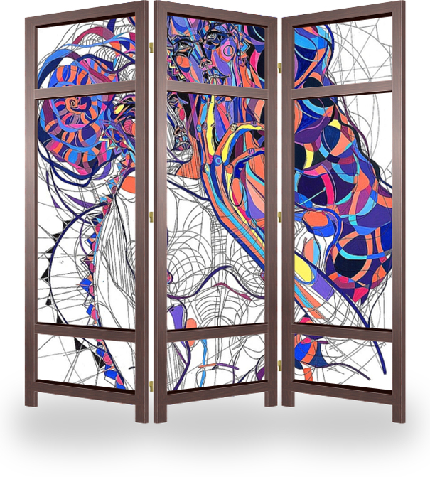 Описание ширмы Эта картина изображает духовное и эмоциональное единство двух людей. Эта картина о любви, о космосе, о вселенной и взаимном доверии. Карина была написана в 2015 году.
