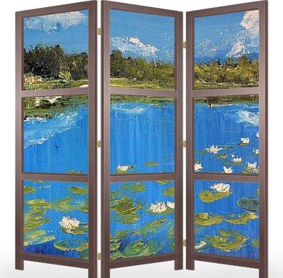 Описание ширмы Каждый год в этом тихом заливчике цветут кувшинки. Многие проезжают это место мимо: рядом проходит высокоскоростная трасса, а съезд к заливу плохой. Но кто туда попадет, будет вознагражден прекрасным видом.
