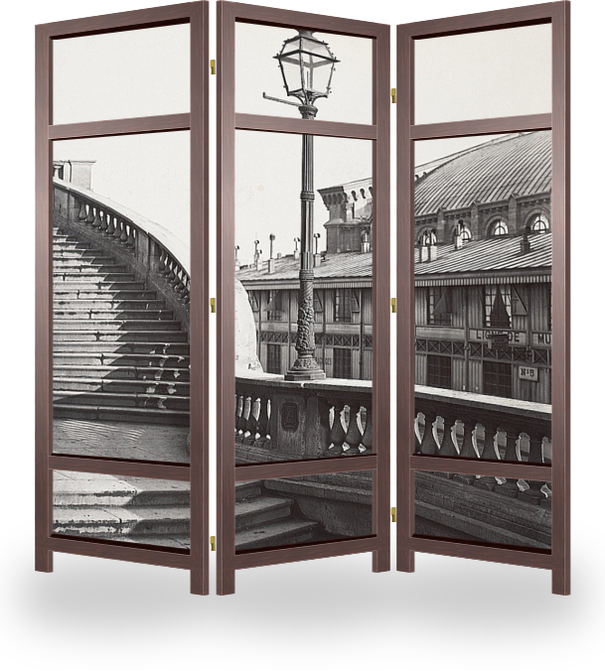Ширма эконом отлично подойдет для временного размещения, рекламы, для отгораживания объектов интерьера и его дополнения. Лицевая сторона с изображением, обратная сторона открытый каркас