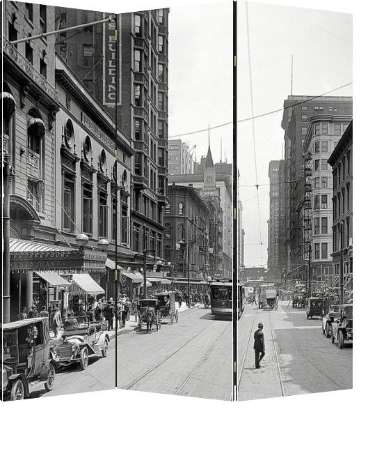 Ширма "Мэдисон-стрит, отель Бревурт и оперный театр Ла Саль, 1910"