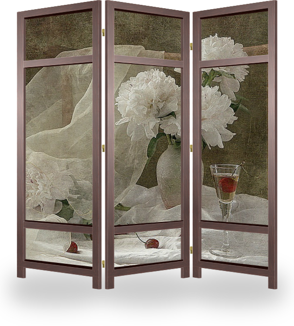Описание ширмы Когда пион бутон свой нежный раскрывает, Рождение Вселенной он напоминает. Из малого - огромное родится, Чтоб мы могли им вдоволь насладиться. (Т. Подцветова)