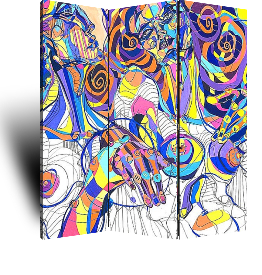Описание ширмы Картина была вдохновлена древними греческими скульптурами. Она о любви, об эмоциях, о счастье и грезах. Она представляет собой греческую скульптуру в современной интерпретации.
