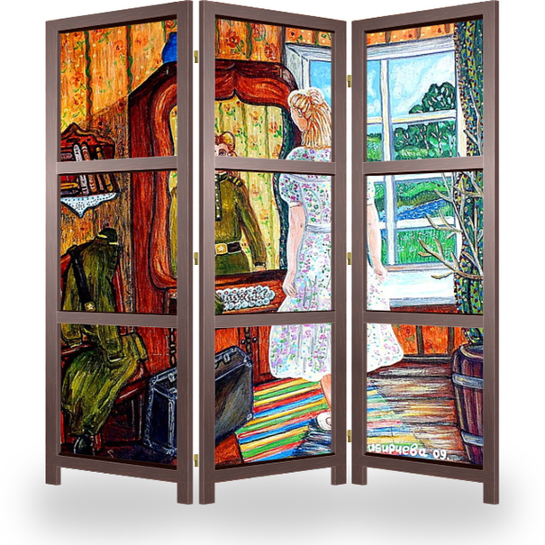 Описание ширмы Написала работу к 65-летию Победы в ВОВ. Постоянно волнует тема женщин на войне. И стихотворение написала:
