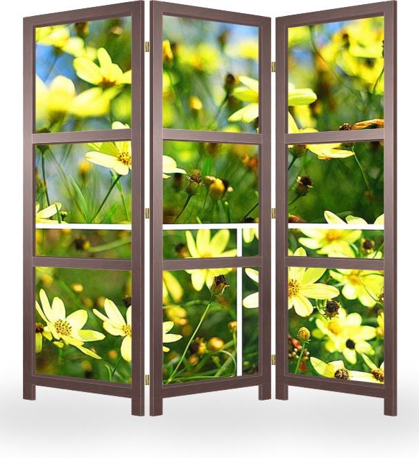 Описание ширмы Коллаж собран из серии фото. Создает жизнерадостное настроение и уют. Солнце освещает желтые цветы. Фотография сделана летом в саду, макросъемка. Подходит в любой интерьер.