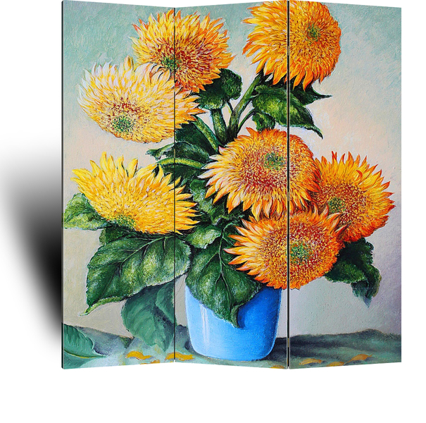 Описание ширмы Очаровательные декоративные подсолнушки цветут до самых заморозков. Прелестный осенний букет из маленьких солнышек. Подсолнух по фен-шуй разносторонний талисман, который можно удачно применить для улучшения различных сфер жизни. Ну и конечно, просто,