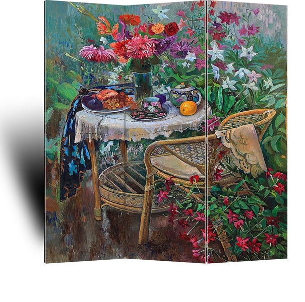 Описание ширмы Бесконечно разнообразные по окраске и форме цветы завораживают взгляд художника. То нежные и хрупкие, то яркие и утончённые. Хочется взять холст с кисточкой и запечатлеть эту гармонию красок.