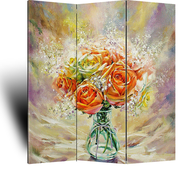 Описание ширмы Картина под названием "Букет роз" написана в 2015 году художницей Светланой Рогозиной. Размер оригинала картины 50x40 см. Холст натянут на подрамник, загрунтован и затем написан художественными масляными красками. На картине изображены цветы: розо
