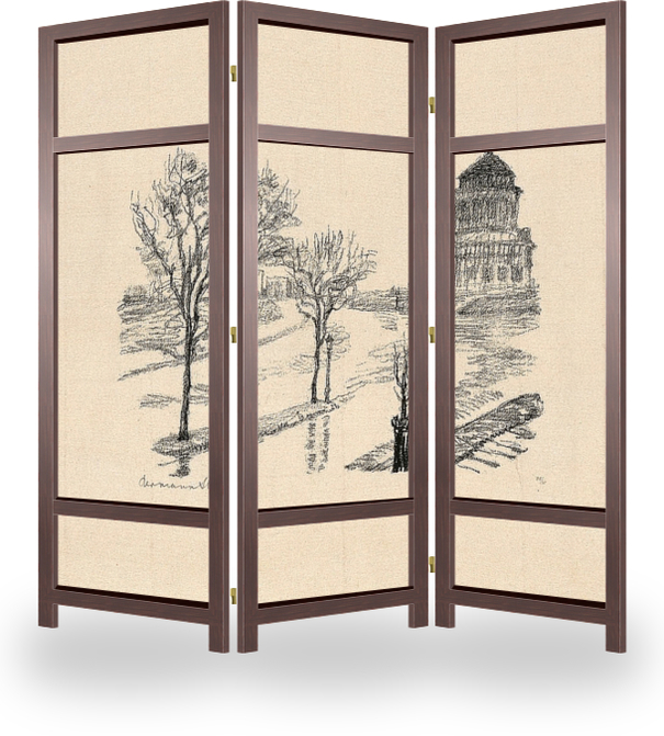 Ширма эконом отлично подойдет для временного размещения, рекламы, для отгораживания объектов интерьера и его дополнения. Лицевая сторона с изображением, обратная сторона открытый каркас