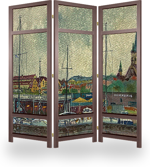 Описание ширмы вид на старый Таллин в дождь акварель, дождь, яхты, Таллин, старый город, замок, сказка, гроза оригинал: бумага/акварель 42 x 25 cm художник Наталия Михальчук, 2015 год