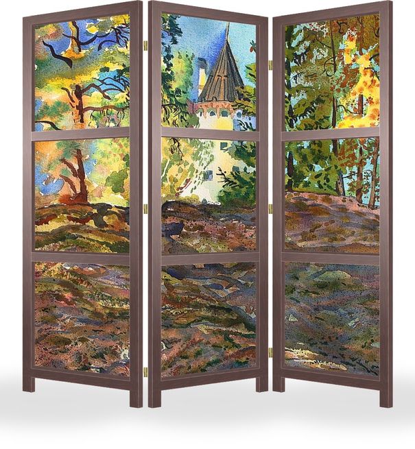 Описание ширмы акварель написана в заповеднике г. Иматра, Финляндия, с натуры (и немного сказочного настроения) вид на Иматран валтионхотелли (Гостиница была построена в 1903 году по проекту архитектора Уско Нюстрома на месте двух небольших деревянных отелей для