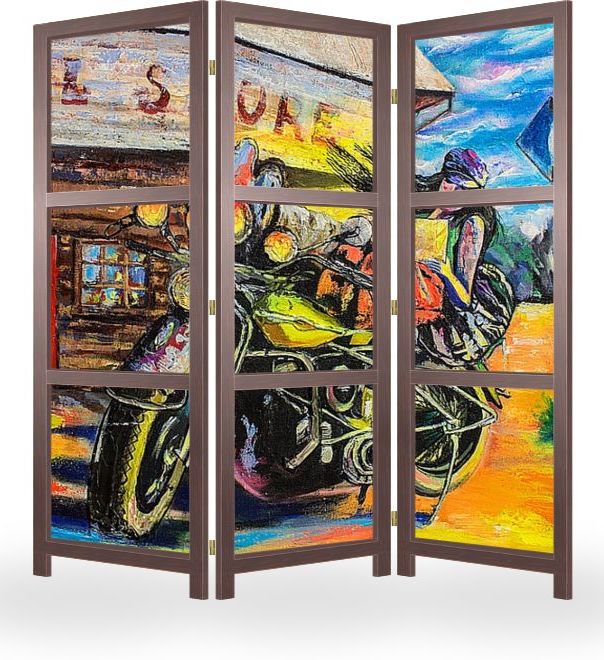 Описание ширмы Эта картина создана под впечатлением от работ художника Дэвида Ула. Из всех моих путешествий, которые ещё только планируется совершить, Трасса 66 занимает особенное место.