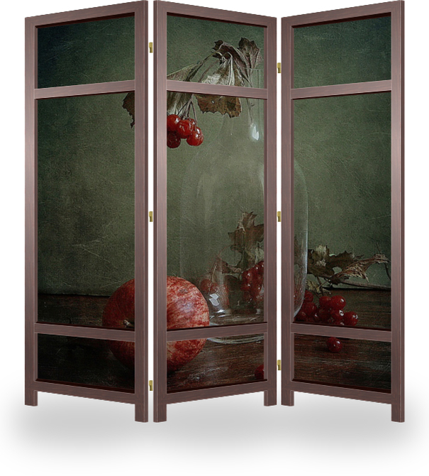 Описание ширмы Калиновая осень В дремотных берегах. В ночь месяц звёзд накосит И выложит в стога. И расплетутся косы. Прощай, последний бант. Эх, молодость, эх, гостья, Сласть прятаться в губах. (В.Кирильчук)