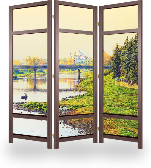 Описание ширмы Уютный и тихий древне-русский городок, выгодно расположившийся на пути между двумя российскими столицами,Торжок радует глаз своими живописными берегами. Этот город - один из 300 в России, имеющих статус "Памятника градостроительства".