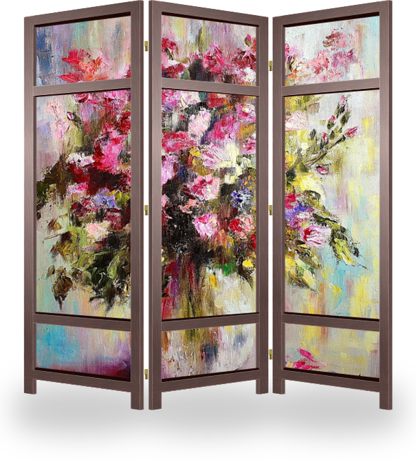 Описание ширмы Цветы – самое прекрасное в растительном мире. Каждый цветок по-своему прекрасен, но садовые цветы особенные в них вложены сила природы, прелесть нежных лепестков и заботливый уход.