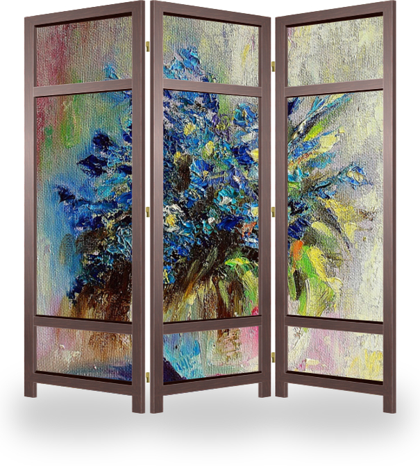 Описание ширмы Богиня флоры - незабудка - Цветок печали и любви, Он как нежнейшая голубка, Он - украшение весны. Лучи их сердце золотили, Как небо сини лепестки, Ну, как же вы всегда красивы! Как ваши чувства высоки!