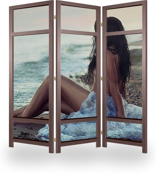 Описание ширмы Девушки и море как бы дополняют друг друга, создавая восхитительную картину. Глядя на фото, неизменно возникает желание оказаться на белоснежном пляже, и что бы рядом так же были очаровательные представительницы прекрасной половины человечества.