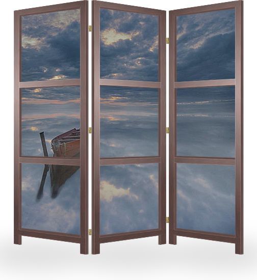 Описание ширмы Ярославская область, Переславский район, лето 2015 года. Одинокая лодка вблизи берега в ожидании своего рыбака или заезжего фотографа. Одна из десятков тысяч лодок России.
