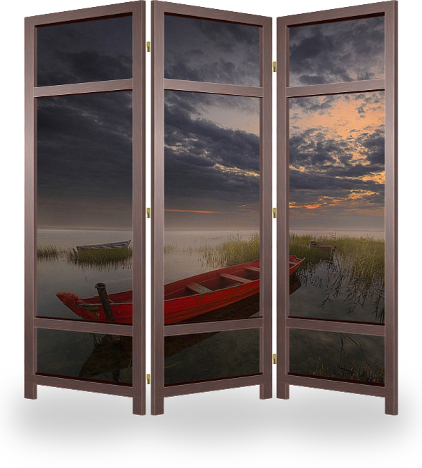 Описание ширмы Ярославская область, Переславский район, лето 2015 года. Одинокая лодка вблизи берега в ожидании своего рыбака или заезжего фотографа. Одна из десятков тысяч лодок России.