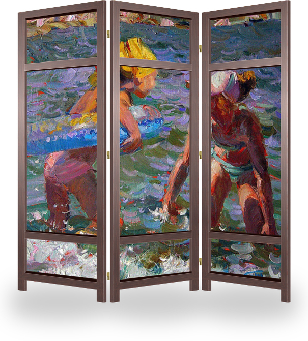 Описание ширмы Как приятно проводить жаркий летний день на берегу моря. Помню, мама часами не могла уговорить меня выйти из воды.А сейчас я так же, как когда-то моя мама наблюдаю с берега как играет моя дочь.