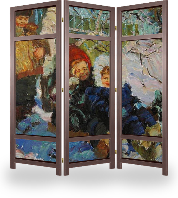 Описание ширмы Бывают такие редкие счастливые зимние дни, когда и солнце, и мороз, и снег.В такие дни детвора до темноты на улице. Как весело играть в сугробах и на горках! Несмотря на мороз - жарко.