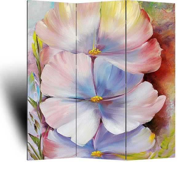 Описание ширмы Три крупных, нежных цветка с шелковыми лепестками, порхающими на ветру. Манящие, нежные , светящиеся. Яркие , нежные и любимые. Принесут в Ваш интерьер свет и радость.