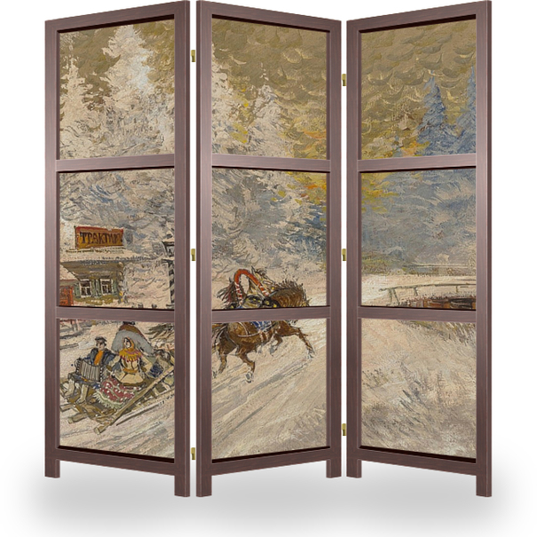 Ширма эконом отлично подойдет для временного размещения, рекламы, для отгораживания объектов интерьера и его дополнения. Лицевая сторона с изображением, обратная сторона открытый каркас
