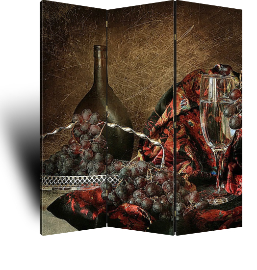 Описание ширмы Натюрморт С черным виноградом прекрасно подходит как аксессуар интерьера, дополнит любой дизайн Вашего дома. Фотонатюрморт - стильный, уникальный и необычный подарок.