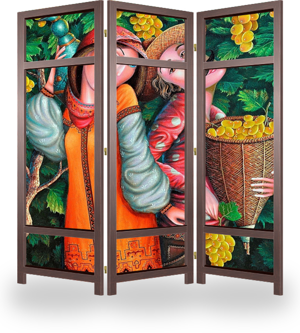 Описание ширмы 70Х90 холст\масло 2015 г Картина осенний флирт навеяна случаем во время сбора виноградного урожая в Восточной Грузии которая называется "Ртвели" на котором не так давно побывал)