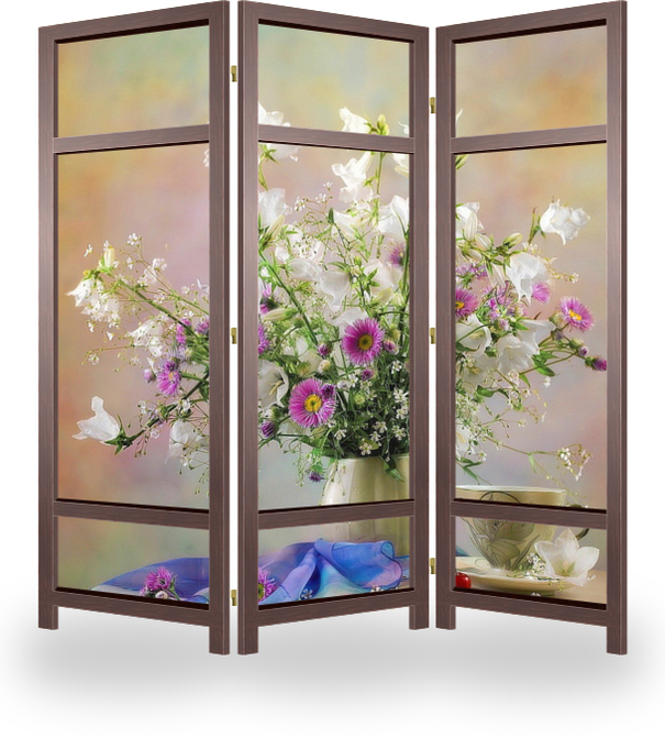 Ширма эконом отлично подойдет для временного размещения, рекламы, для отгораживания объектов интерьера и его дополнения. Лицевая сторона с изображением, обратная сторона открытый каркас
