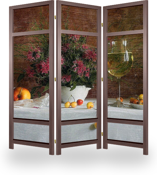 Описание ширмы Слово «натюрморт» пришло в русский язык из французского в конце XIX в. Натюрморт – это термин, используемый в живописи и означающий «изображение группы предметов, таких как цветы, фрукты, рыба и тому подобное»