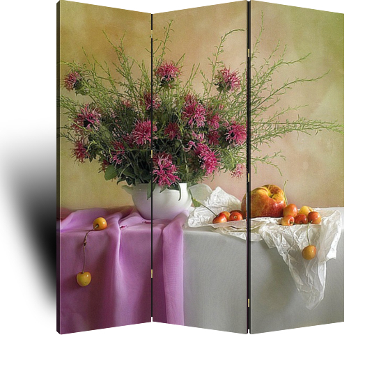 Описание ширмы Слово «натюрморт» пришло в русский язык из французского в конце XIX в. Натюрморт – это термин, используемый в живописи и означающий «изображение группы предметов, таких как цветы, фрукты, рыба и тому подобное».