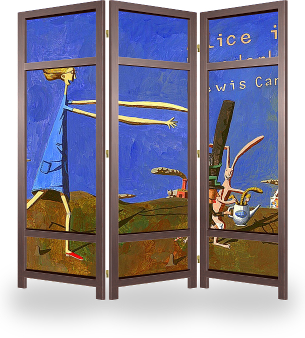 Описание ширмы Льюис Кэрролл, Приключения Алисы в стране чудес, Алиса сидела со старшей сестрой на берегу и маялась: делать ей было совершенно нечего, а сидеть без дела, сами знаете, дело нелегкое; раз-другой она, правда, сунула нос в книгу, которую сестра читала,