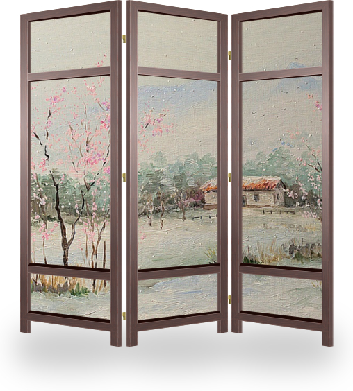 Описание ширмы В марте неожиданно выпал снег. Метель мела дня три и заметала только что распустившийся миндаль, горы, виноградники. Очень красивое, и редкое явление для южного берега Крыма.