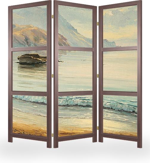 Описание ширмы Картина написана с этюда акварелью.Ходили с художниками на пленэр в сторону мыса Меганом.Было очень красивое осеннее утро. И потом дома, захотелось написать картину..