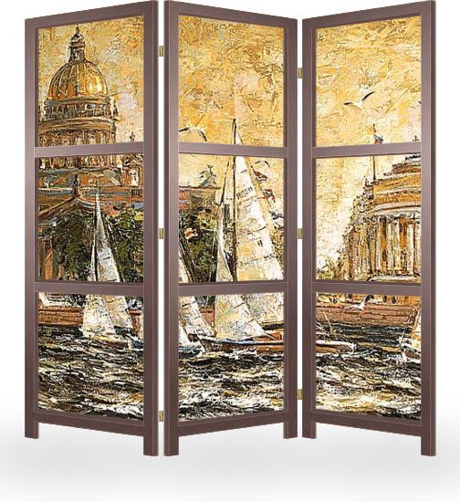 Описание ширмы Летом в Санкт Петербурге часто проходят соревнования под парусами, регата, радует глаз. Это так романтично и красиво, что завораживает пока не пролетят мимо эти белые как лебеди паруса.
