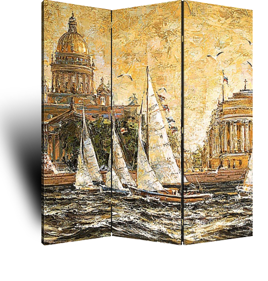 Описание ширмы Летом в Санкт Петербурге часто проходят соревнования под парусами, регата, радует глаз. Это так романтично и красиво, что завораживает пока не пролетят мимо эти белые как лебеди паруса.