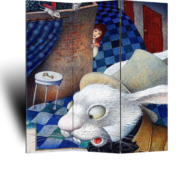 Описание ширмы Иллюстрация к волшебной, загадочной сказке Льюиса Кэрролла "Алиса в стране чудес". Мир, в котором переплетены реальность и фантазия, настоящее и будущее...