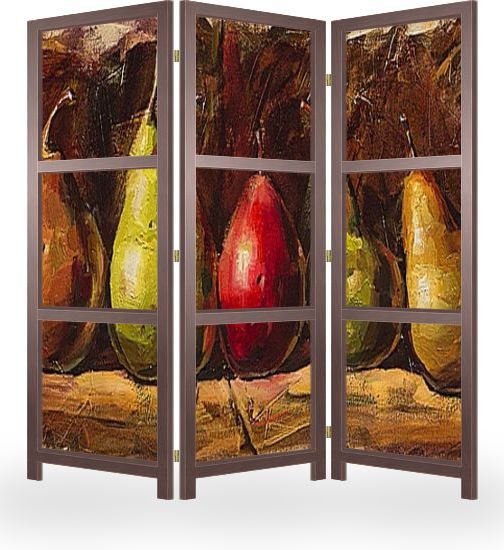 Описание ширмы Эта картина писалась в 7 утра, при восходящем солнце, в начале сентября. Яркое освещение, глубокие тени, рельефные мазки, и вкусные разные груши. Пусть они украсят Вашу кухню и напомнят о светлой и теплой осени.