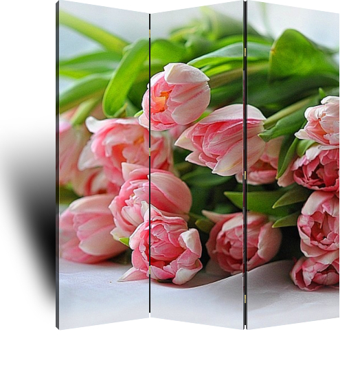 Описание ширмы Букет нежных тюльпанов пахнет свежестью, нежно-розовые оттенки радуют глаза, дневной свет мягко освещает тюльпаны,и все это навевает воспоминания о весне....