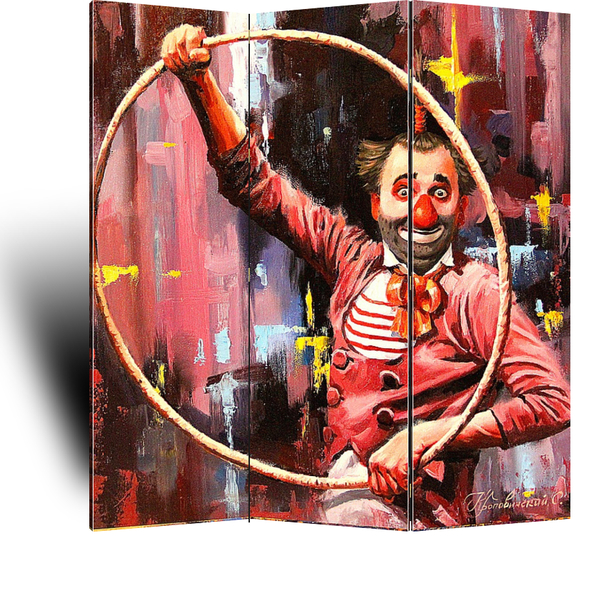 Описание ширмы Обожаю клоунов, с многими дружу. Это волшебные люди! Цирк - это особая страна, свой мир, и я знаю этот мир, этих людей, без которых будет гораздо скучнее жить! Клоуны - не только цирк, это своя философия.