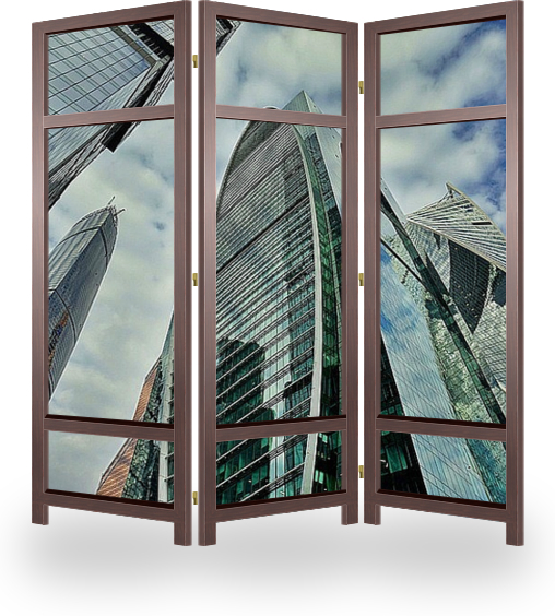 Описание ширмы чудесные облака и октябрьское небо отлично контрастирует с футуристическим формами небоскребов Москва Сити необычный ракурс создает отличное романтическое настроение