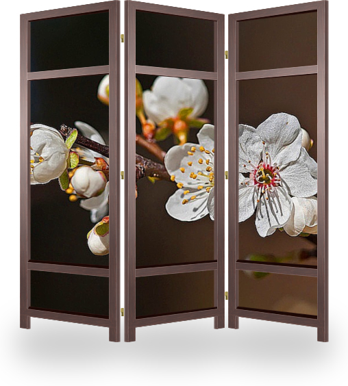 Описание ширмы В первый день марта, когда природа только просыпается, одними из первых зацветают фруктовые деревья - миндаль, абрикос, алыча! Маленькие беленькие невзрачные цветы алычи привлекают внимание своей красотой, притягивают взгляд фотографа!