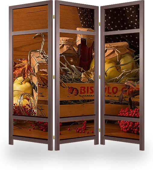 Описание ширмы Любую хозяйку осенью радуют ломящиеся от заготовок полки в чулане. Открыв зимой банку ароматного компота из антоновки, снова вспоминаешь чудесные летние деньки.