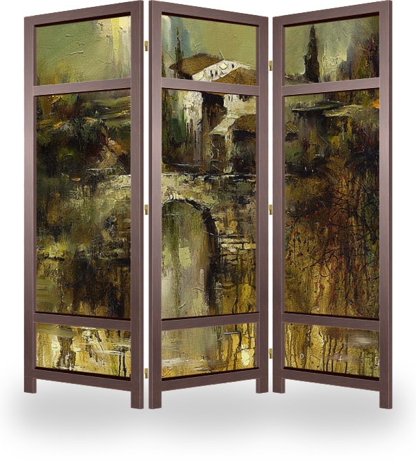 Описание ширмы Прекрасная Италия, красота этой страны завораживает. Живописность Тосканы, неповторимость итальянских провинций, вдохновили меня написать этот полу абстрактный пейзаж. Не апеллируя конкретными формами я попытался передать впечатления от путешествий п