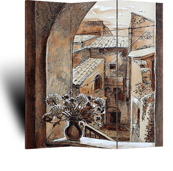 Описание ширмы Эта графическая работа создана по личным впечатлениям после путешествия по югу Италии. Август в Калабрии, солнце, море. Оформленная работа будет великолепно смотреться в вашем интерьере.