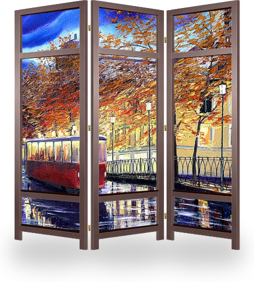 Описание ширмы Лучший художник - осень. И даже в дождливый ненастный день хочется запечатлеть её яркие краски, перед тем как город окрасится в мрачные и скучные серые тона.